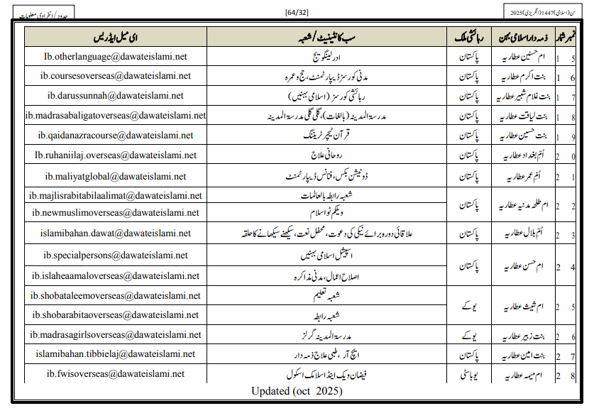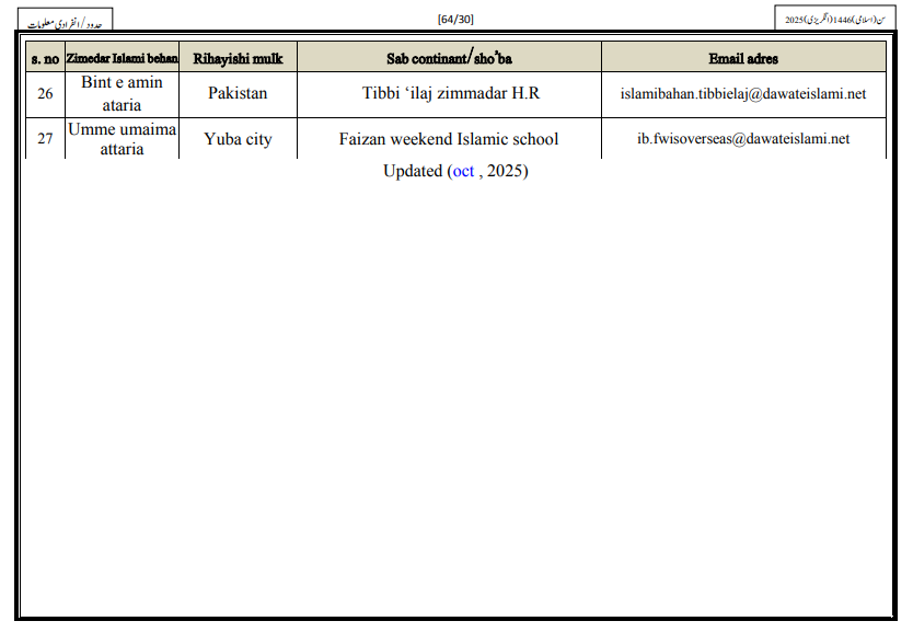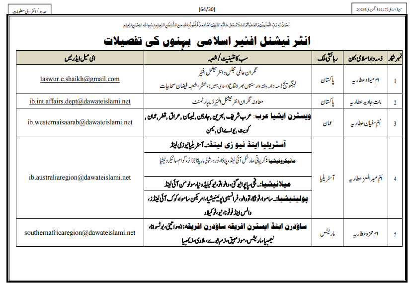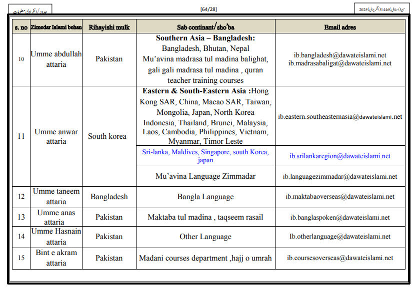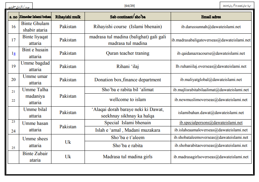 سلامی بھائیوں کے ساتھ ساتھ لاکھوں لاکھ اسلامی بہنوں نے بھی شیخ طریقت امیراہلسنت بانی دعوت اسلامی حضرت علامہ مولانا ابو بلال محمد الیاس عطار قادری رضوی ضیائی دامت برکاتہم العالیہ کے خون پسینے سے سینچی ہو ئی تبلیغ قرآن و سنت کی عالمگیرغیرسیاسی تحریک ’’ دعوتِ اسلامی‘‘ کے مدنی پیغام کو قبول کیا، فیشن پرستی اور فحاشی و عریانی سے سر شار معاشرے میں پروان چڑھنے والی بیشمار اسلامی بہنیں گناہوں کے دلدل سے نکل کر امہات المؤ منین اور شہزادیٔ کونین بی بی فاطمۃ الزہرا رضی اللہ تعالی عنھا کی دیوانیاں بن گئیں ۔ گلے میں دوپٹا لٹکا کر شاپنگ سینڑوں اور مخلوط تفریح گاہوںمیں بھٹکنے والیوں، کو کر بلا والی عفت مآب شہزادیوں رضی اللہ تعالی عنھا کی شرم و حیا کی وہ برکتیں نصیب ہوئیں کہ مدنی بُرقع ان کے لباس کا جزو لا ینْفَک (یعنی نہ جدا ہونے والا حصہ) بن گیا۔ الحمدللہ عزوجل بے شمار مقامات پر اسلامی بہنوں کے بھی شرعی پردے کے ساتھ ہفتہ وار سنتوں بھرے اجتماعات ہو تے ہیں۔ اور اسلامی بہنوں کے مدرسۃ المدینہ بھی لگتے ہیں ۔ الحمدللہ عزوجل مدنی منیوں اور اسلامی بہنوں کو قرآن کریم حفظ و ناظرہ کی مفت تعلیم دینے کیلئے کئی مدارس المدینہ اور عالمہ بنانے کیلئے متعدد، ’’جامعات المدینہ‘‘ قائم ہیں ۔ الحمدللہ عزوجل دعوتِ اسلامی میں ’’حافظات‘‘ اور ’’مدنیہ عالمات‘‘ کی تعداد بڑھتی جا رہی ہے۔ دعوت ِاسلامی مدنی کاموں سے جُڑی ہے اور مدنی کاموں کا مقصد فقط اللہ عزوجل کی رضاہے اور اللہ عزوجل کی رضا جنت میں پہنچا دے گی۔ ان شاء اللہ