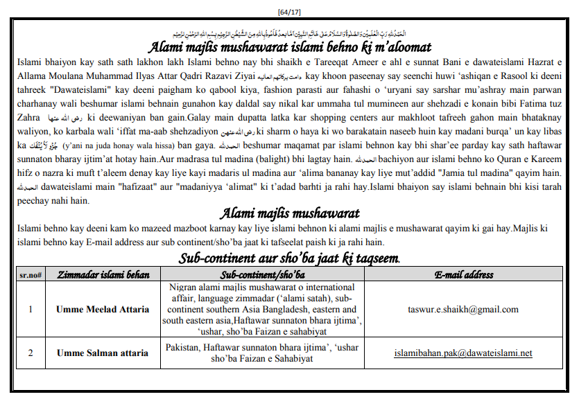 شعبہ اسلامی بہن(دعوت اسلامی) کا تعارف