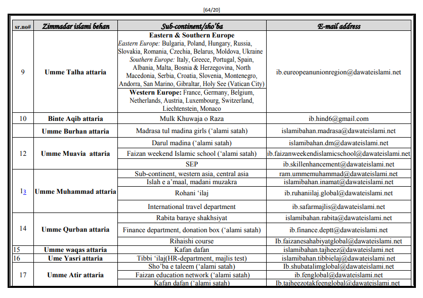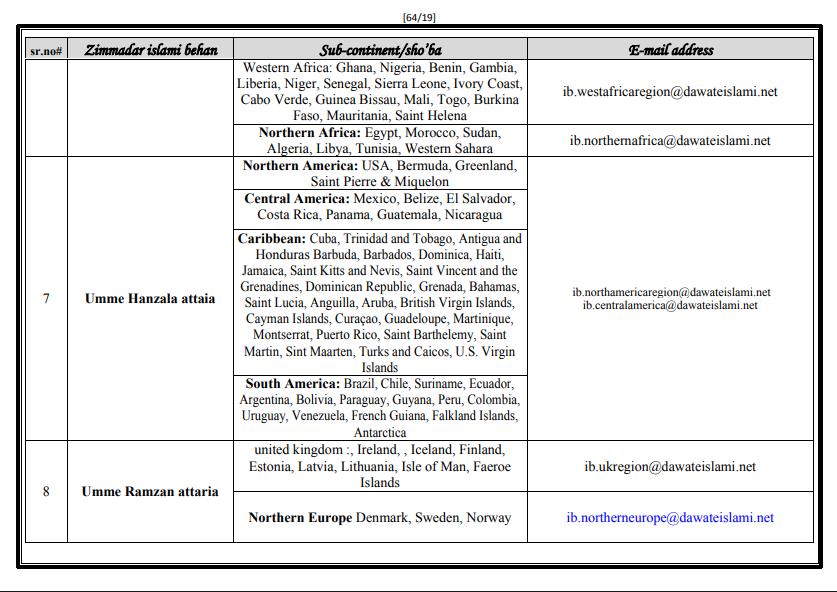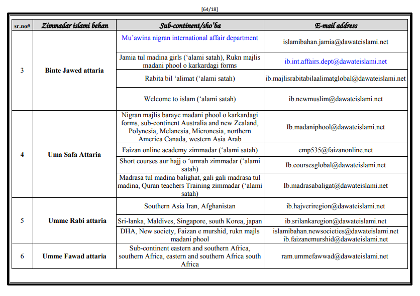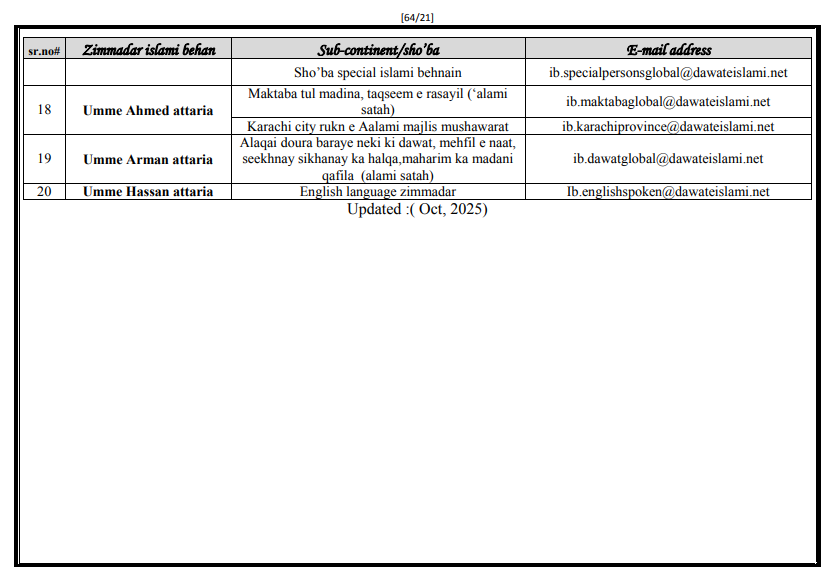 اسلامی بھائیوں اوراسلامی بہنوں میں تنظیمی ذِمّہ داریوں کے نام